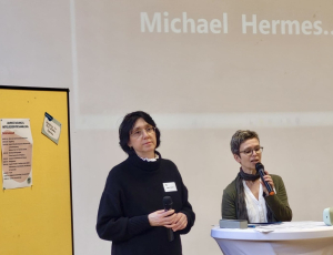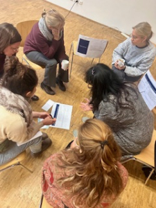 Nach der offiziellen Begrüßung durch Yvonne Gaye und Sigrid Kemler, Vertreterinnen des erweiterten AHF Vorstands, und einem Grußwort von Eva Maria Malburg aus dem Hessisches Ministerium für Familie, Senioren, Sport, Gesundheit und Pflege, startete der erste Impuls zum Thema „Familienbildung – Aktuelle Einblicke in die empirische Forschung“ von Prof. Dr. Michael Hermes Professor für Theorien und Konzepte Sozialer Arbeit – Schwerpunkt Familienbildung der Kath. Hochschule Köln. Nachdem der per zoom zugeschaltete Prof. Dr. Hermes den Teilnehmenden einen Überblick zum aktuellen Forschungsstand rund um das Fachfeld Familienbildung gegeben hat, wurden durch die Teilnehmenden in Kleingruppen unterschiedliche Praxissituationen aus Kursen der Familienbildung analysiert und das Vorgehen der Familienbildner*innen in den vorgestellten Praxisbeispielen besprochen.