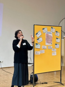 Nach der offiziellen Begrüßung durch Yvonne Gaye und Sigrid Kemler, Vertreterinnen des erweiterten AHF Vorstands, und einem Grußwort von Eva Maria Malburg aus dem Hessisches Ministerium für Familie, Senioren, Sport, Gesundheit und Pflege, startete der erste Impuls zum Thema „Familienbildung – Aktuelle Einblicke in die empirische Forschung“ von Prof. Dr. Michael Hermes Professor für Theorien und Konzepte Sozialer Arbeit – Schwerpunkt Familienbildung der Kath. Hochschule Köln. Nachdem der per zoom zugeschaltete Prof. Dr. Hermes den Teilnehmenden einen Überblick zum aktuellen Forschungsstand rund um das Fachfeld Familienbildung gegeben hat, wurden durch die Teilnehmenden in Kleingruppen unterschiedliche Praxissituationen aus Kursen der Familienbildung analysiert und das Vorgehen der Familienbildner*innen in den vorgestellten Praxisbeispielen besprochen.